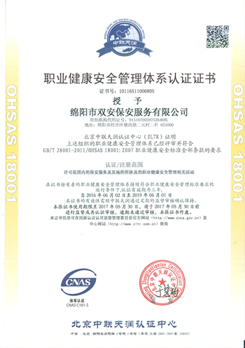 英文版職業(yè)健康安全管理體系認(rèn)證證書