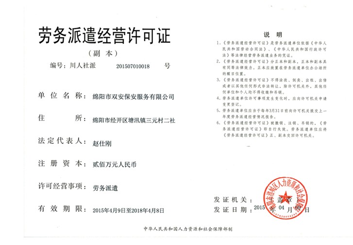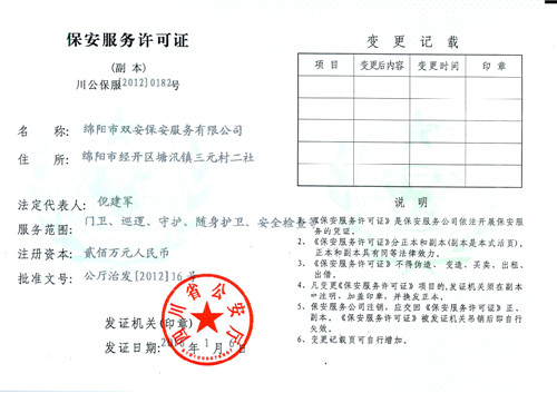 綿陽(yáng)市雙安保安服務(wù)有限公司